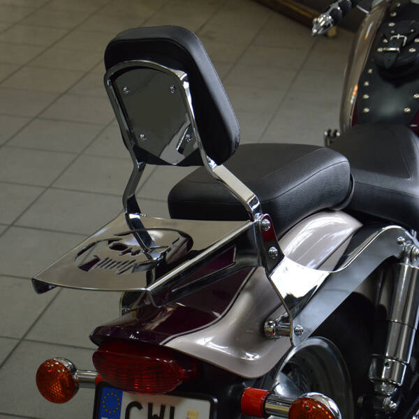• Chrome passenger backrest for SUZUKI VZ 800 Marauder till 2004 year. Made of polished and chrome-plated steel. Galvanic coating: copper, chrome. Cushion made of strong upholstery. Choose your configuration: coating, cushion and back plate.