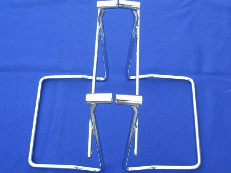 • Chromed saddlebag support rails with props. Made of steel chromed profile. Galvanic cover: copper, nickel, chrome. They fit to saddlebags of all sizes. The offer is a set of both: left and right saddlebag support rails. .