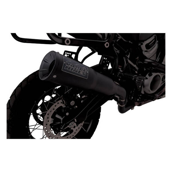 This Adventure Hi-Output 450 is a slip-on muffler, specifically designed for the 1250 Revolution Max engine. From 304 stainless material which offers a weight reduction of almost 6lbs (2.72kg) and a 5 horsepower and 5ft. pds. torque increase. - 304 stainless / black - Cutting-Edge baffle design delivering bold rumble while meeting SAE J2825 decibel levels - Stepped 4.5-inch diameter slip-on delivers over +5 horsepower and +5 ft. pds torque - Nearly 6 lbs. (2.72kg) lighter than stock - CNC machined billet end cap - Improved rider boot clearance - Compatible with OEM saddlebags and centerstand - 50-State emissions compliant.