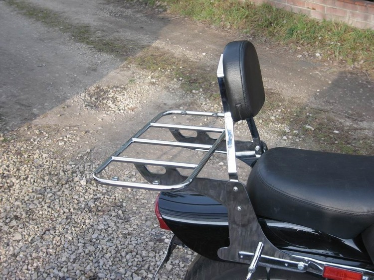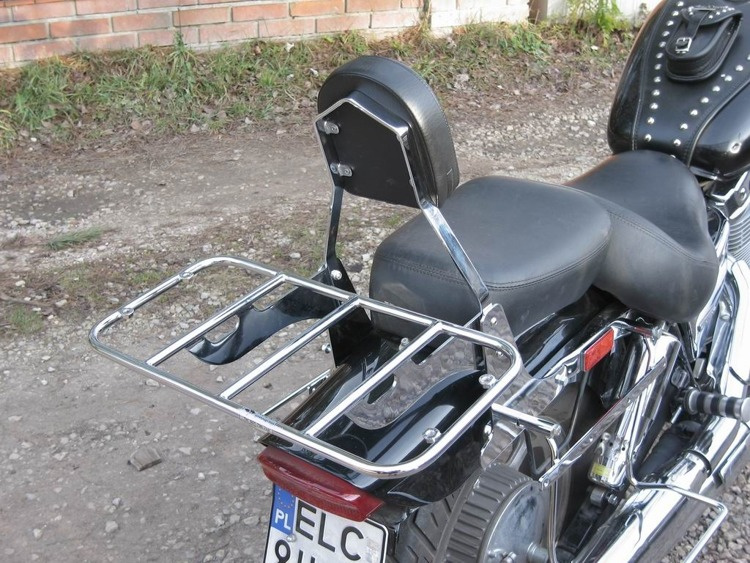 • Big, chromed luggage rack. Size 50 cm x 25 cm, ideal for roll bags montage. STANDARD version with NO grinding welds and joints. Galvanic cover: copper, nickel, chrome. Made of steel tubes Ø 14 mm. Suits only to passenger backrests of METALROUTE production