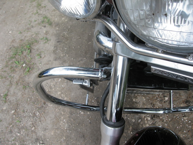 Classic chromed front engine guards. STANDARD version with NO grinding welds and joints. Galvanic cover: copper, nickel, chrome. Made of precision steel pipe: Ø 32 mm, thickness 2.5 mm. Width ~70 cm. One-piece construction. Mounting screws included.