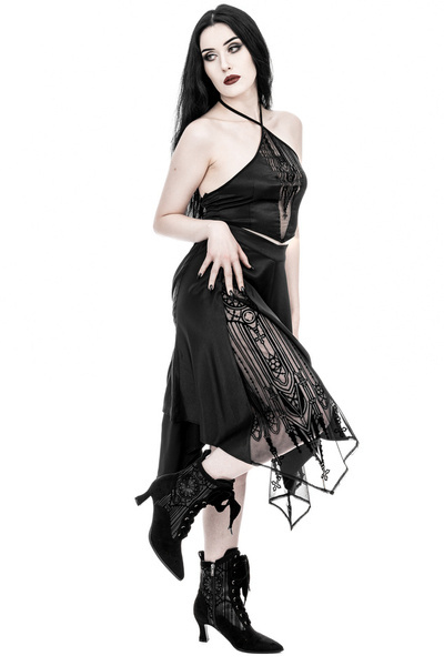The AFTERLIFE HALTERNECK TOP top was inspired by the grandeur and elegance of Gothic architecture. It offers an extraordinary alternative to basic tops, making it an essential for every goth!