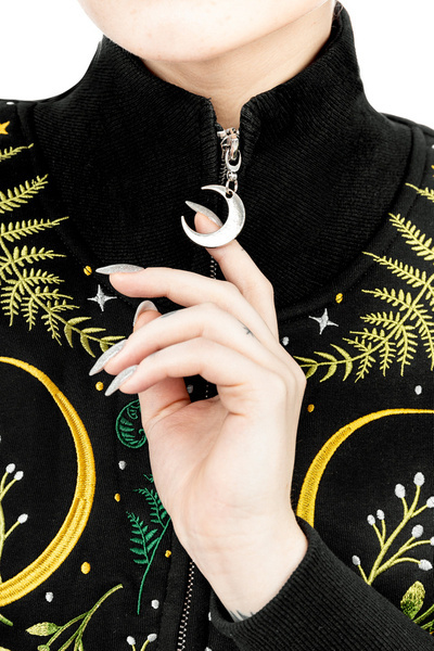 ⋆ Zip fastening with a silver crescent puller that harmonizes beautifully with the embroidered gold crescents
