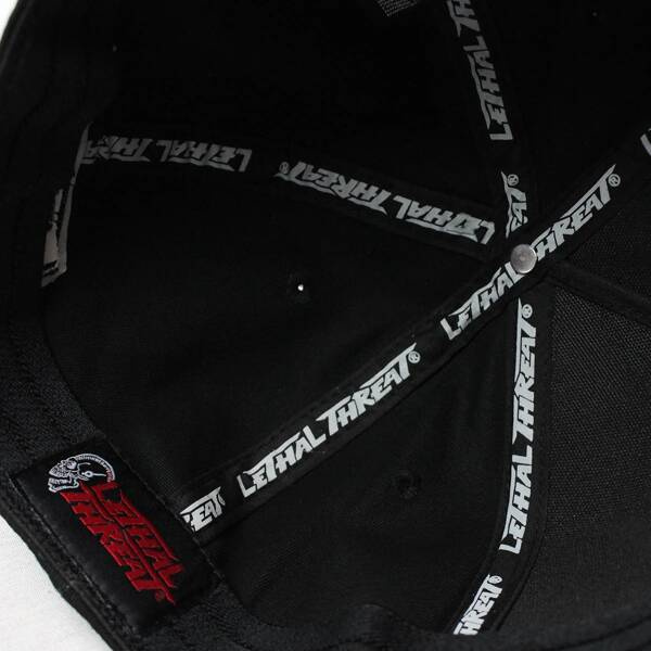 Branded and licensed baseball cap of company LETHAL THREAT. Flat bill. For HER and for HIM. One size fits all, adjustable at the back. Made of 100% high-quality cotton. Printed/embroidered graphics. Colour black.
