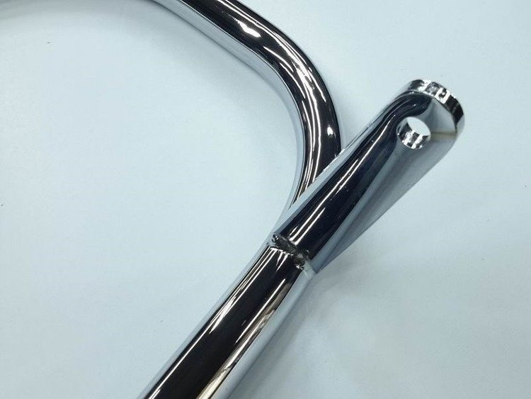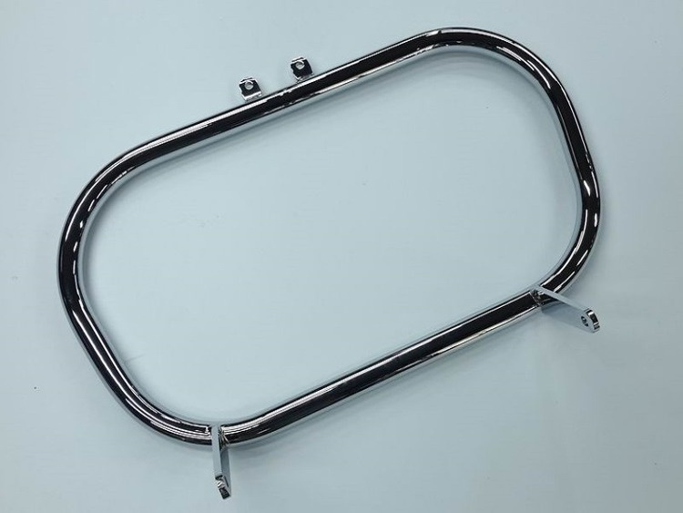 Classic chromed front engine guards. EXTRA version with grinding welds and joints. Galvanic cover: copper, nickel, chrome. Made of precision steel pipe: Ø 32 mm, thickness 2.5 mm. Width ~70 cm. One-piece construction. Mounting screws included.
