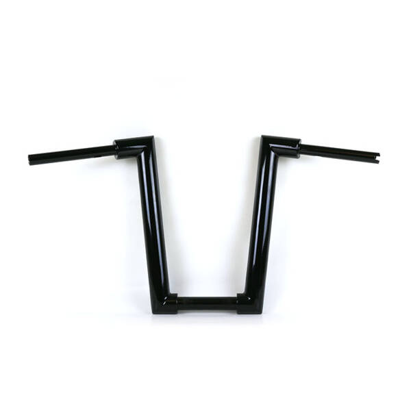 With approval. Gloss black powder coated Super Fat 2" (51mm) diameter handlebar. - Extra tall. 43cm high x 80cm wide x 26cm lower width x 13cm pullback - 1-1/4" (32mm) riser area - E-throttle - Okay for heated grips - Slotted for internal wiring - Wiring slot facing down Note: Check your local MCS dealer or the MCS sales department for exact type of approval and validity on bike model and years on the test report.