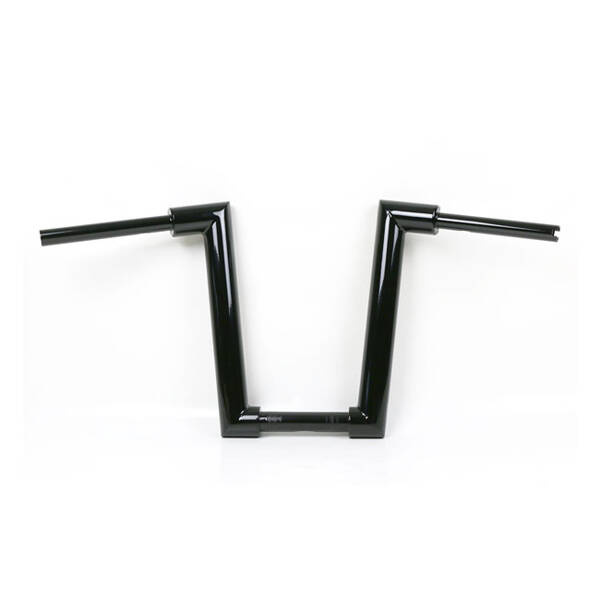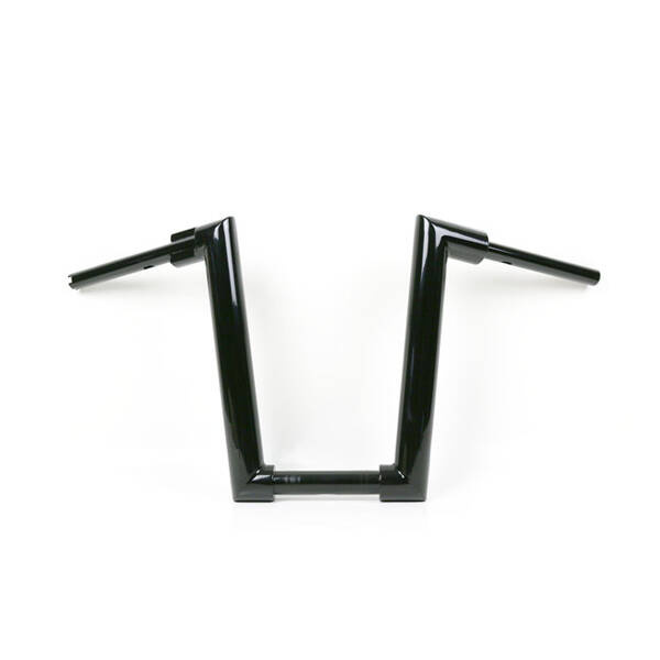 With approval. Gloss black powder coated Super Fat 2" (51mm) diameter handlebar. - Tall. 38cm high x 81cm wide x 26cm lower width x 13cm pullback - 1-1/4" (32mm) riser area - E-throttle - Okay for heated grips - Slotted for internal wiring - Wiring slot facing down Note: Check your local MCS dealer or the MCS sales department for exact type of approval and validity on bike model and years on the test report.