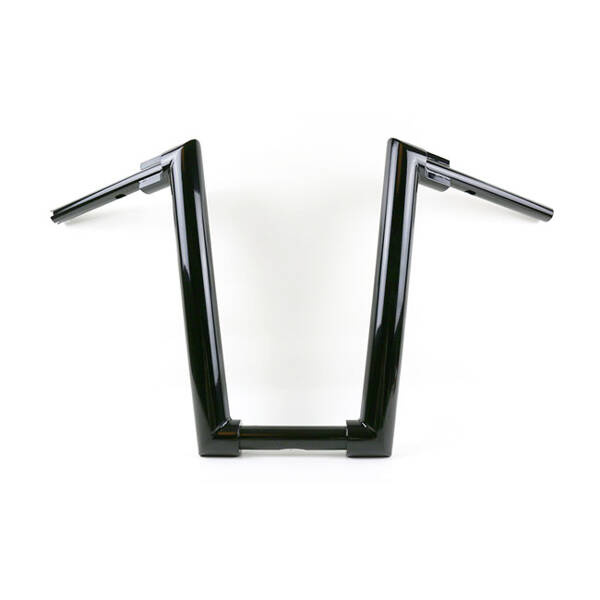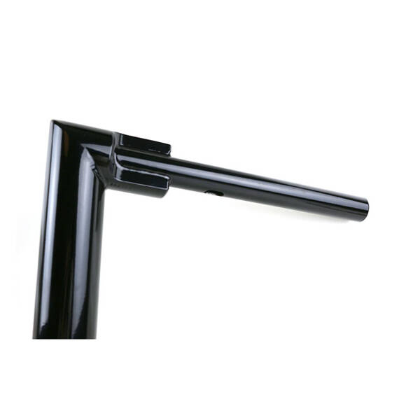 With approval. Gloss black powder coated Super Fat 2" (51mm) diameter handlebar. - Extra tall. 43cm high x 80cm wide x 26cm lower width x 13cm pullback - 1-1/4" (32mm) riser area - E-throttle - Okay for heated grips - Slotted for internal wiring - Wiring slot facing down Note: Check your local MCS dealer or the MCS sales department for exact type of approval and validity on bike model and years on the test report.
