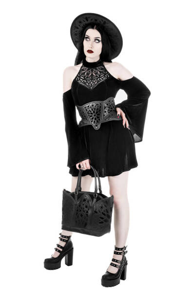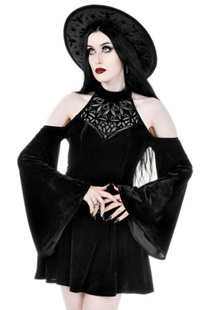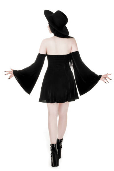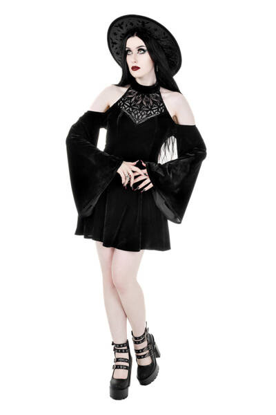 ⋆ Long-sleeved gothic mini dress made of luxurious deep black stretch velvet