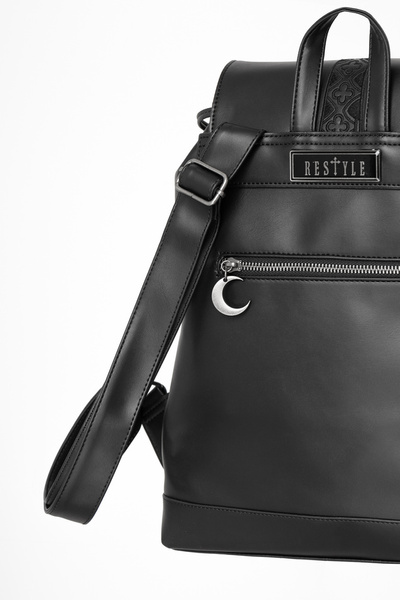 This gothic PU leather backpack is a statement piece like no other. It showcases intricately embroidered snakes, their sinuous bodies adorned with patterns inspired by cathedral architecture. Mysterious, captivating, elegant, and exclusively crafted by Restyle.