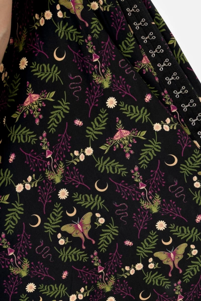 For those who walk barefoot on moss, listen to the wind, and find magic in the wild – this dress is made for you. Whether in the sun or under the stars, the stunning botanical print comes to life. Moths flutter at dusk, snakes glide through the leaves, and woodland plants grow wild.