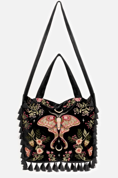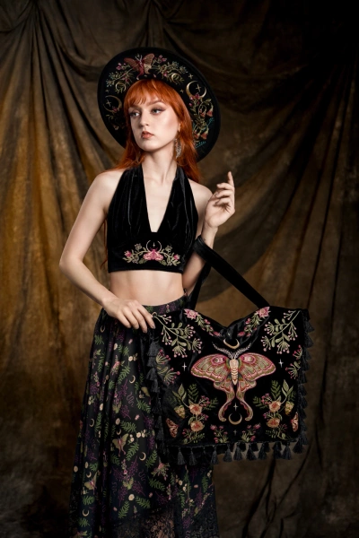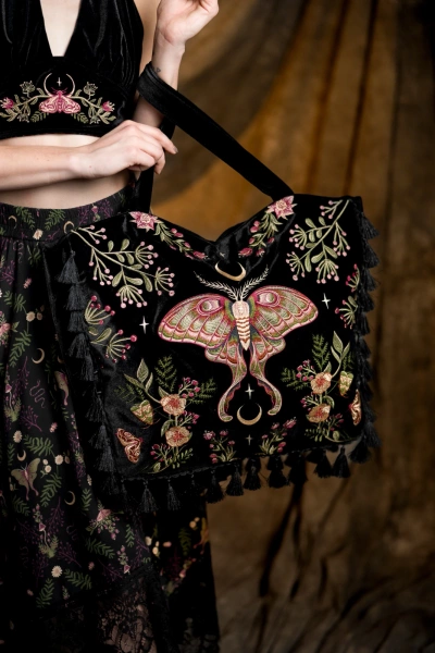 Rich velvet, lavish moth and botanical embroidery, and a full tassel trim make it feel like something from an enchanted tale. The colors, the details, the craftsmanship – every inch is a celebration of magic and nature. It’s not just a bag – it’s a masterpiece of art!