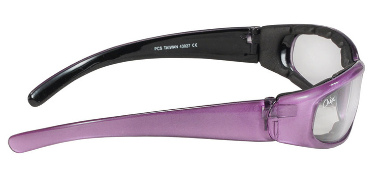 • CHIX - women's motorcycle glasses, straight from California. Clear lenses and Purple frame. Polycarbonate lenses, 100% UV protection. Light, perfect for riding. Free CHIX bag. In Poland only in the metalRoute shop!