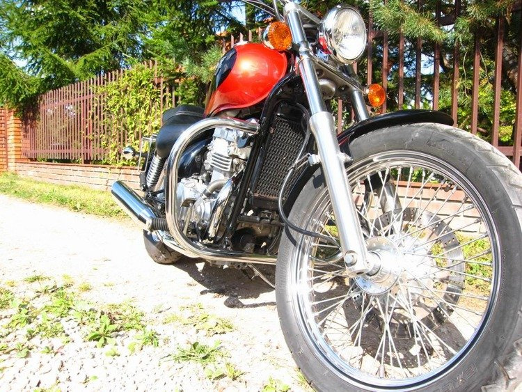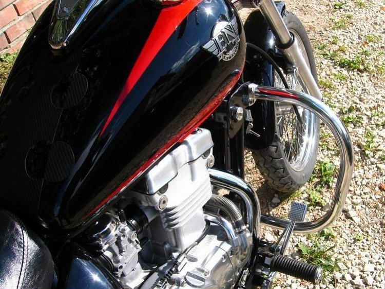 Classic chromed front engine guards. Galvanic cover: copper, nickel, chrome. Made of precision steel pipe: Ø 32 mm, thickness of 2.5 mm. Width approximately 75 cm. One-piece construction.