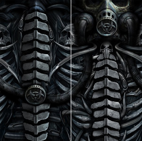 As the Apocalypse rains down from on high, the ensuing Nuclear fallout dictates the wearing of Biohazard armour. But death creeps on, as the legion of bleached skulls makes all too apparent.
