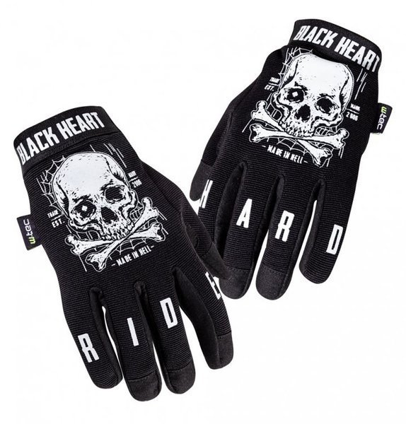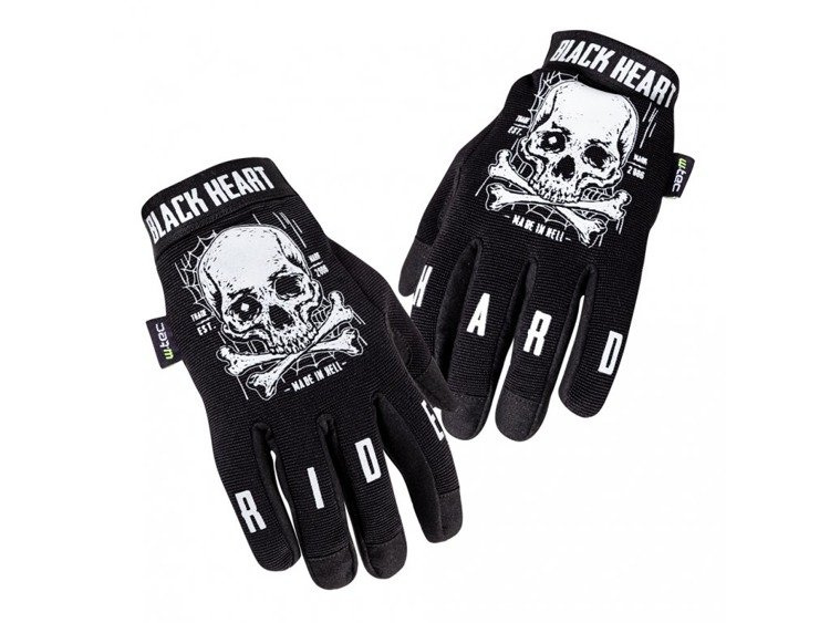 Moto gloves W-TEC W-TEC WEB SKULL from Black Heart. Lightweight, material gloves suitable for the type of motorcycle chopper, cruiser, bobber, motocross, enduro, but also on quads or mountain bikes. Great breathability that provides comfort throughout the journey. The lining is comfortable and pleasant to the touch. The palm area of the glove is equipped with non-slip applications, thus ensuring a sure grip. For greater durability, this part of the glove is also provided with a double layer of material. Description: - original graphic motif, - ergonomic design, - breathable fabric at the upper side of glove, - non-slip finish of the palm for better grip, - double layer of material on the palm, - velcro closure, - elastic panel at wrist, - comfortable lining, - ability to control touch devices (smartphones, tablets, etc.) - directly in gloves, - Material: 50% nylon, 40% synthetic leather, 10% elastane.