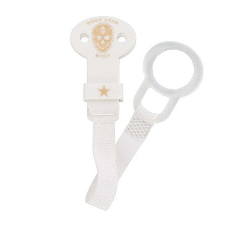 • Pacifier pendant ROCK STAR BABY. A unique design,specially designed by Tico Torres from Bon Jovi. Full of rock style. Motifs with skulls, guitars and tattoos-great rock flavors for your child. EU certificatele. Has a hook to easy attach it to the stroller