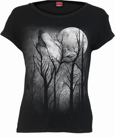 A menacing shape emerges in the nocturnal landscape – a snarling, howling wolf within the trees, with blood-red eyes and gleaming teeth. The spirit of the hunt is alive and hungry.