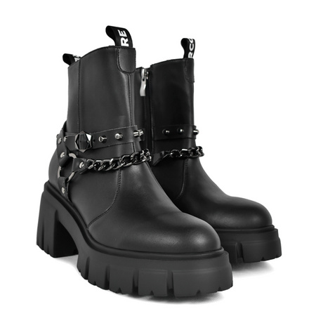 • Black feminine heel shoes made of quality vegan leather. The heel hight 7 cm. Polish production. The highest quality of materials and workmanship guarantee long and comfortable usage.