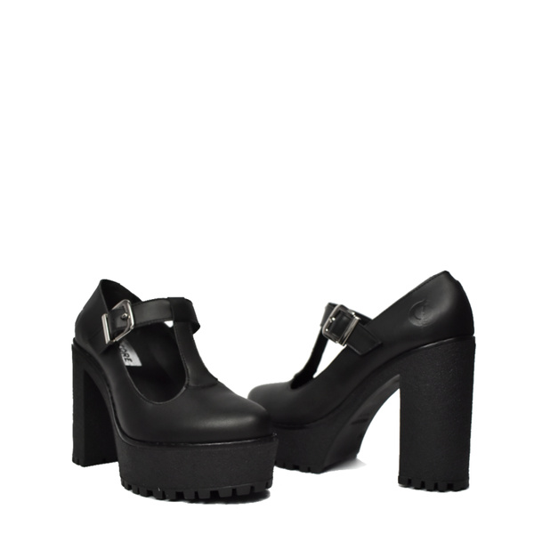• Black feminine heel shoes made of quality vegan leather. The heel hight 11,5 cm. Polish production. The highest quality of materials and workmanship guarantee long and comfortable usage.