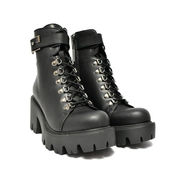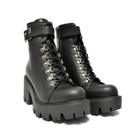 • White feminine black heel shoes made of high quality vegan leather. The heel hight 7,5 cm. Polish production. The highest quality of materials and workmanship guarantee long and comfortable usage.
