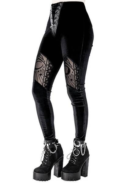 Gothic velvet leggings with a mesh with the fortune teller pattern.
