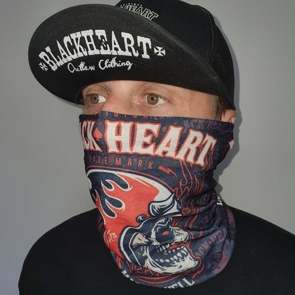 • Branded BLACK HEART Multifunctional Face Wraps. An indispensable attribute of rock fashion for every biker. Black colour. 100% polyester material. Dimensions 48 x 25 cm. Made in Hell. In Poland, only available in our metalRoute rock store.