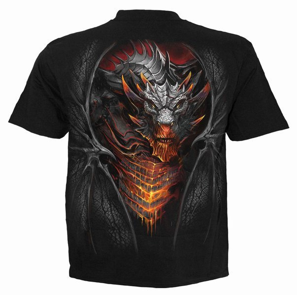 Wings of charred sulphur envelope the suffocating heat burning from within this dragon’s belly. Molten lava seeps from every crack along her body, dripping to the ground where furious flames whip and lick at her feet.