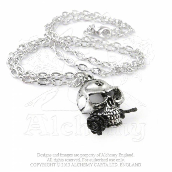 Classic skull of the philosopher. A pewter, two-tone pendant with black rose.