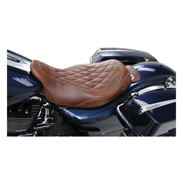 Distressed brown. 14" wide. Diamond style stitch. Note 1: Mustang solo seats & passenger seats cannot be mixed with OEM solo or passenger seats. Note 2: See 537011 for the matching passenger seat.