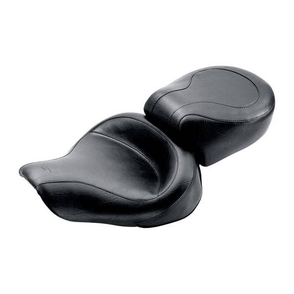 Black. Front width 15", rear width 12". Standard stitch. Extra wide for additional comfort. Places the rider in the stock rider position with additional lower back support. Perfect for long distance 2-up cruising. The seat is a split foam construction, but mounted on a one-piece marine-grade fiberglass baseplate.