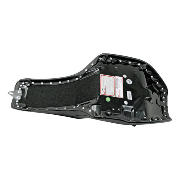 Black. Front 12" wide & rear 7" wide. Standard stitched. A low profile one-piece seat with, due to the deep cut rider section, a great back support. The tapered back section is smooth and rounded but still offers a reasonable passenger comfort for around town and small trips. Note: Sizes given are rider & passenger seat area widths in inches.