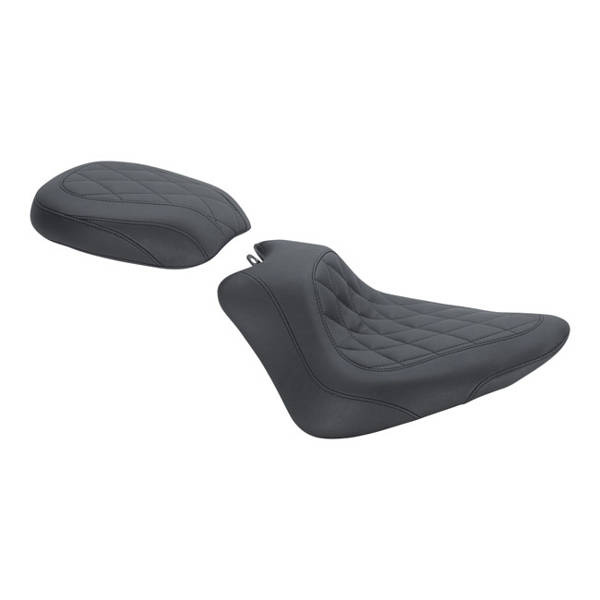 Black. 13" wide. Diamond style stitch. Note 1: Mustang solo seats & passenger seats cannot be mixed with OEM solo or passenger seats. Note 2: See 537430 for the matching passenger seat.