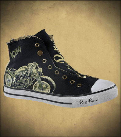 • Markowe, jedyne w swoim rodzaju trampki od RUSTY PISTONS wykonane z mocnego płótna. Solidnie wulkanizowana podeszwa. Piękne grafiki samochodowo-motocyklowe. Logo RP z tyłu i na boku. Grafiki: lewy trampek-HOT ROD, prawy-BOBBER. W Polsce tylko w metalRoute