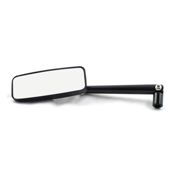 Black anodized. CNC machined aluminum with adjustable stem. Mirror stem is 8mm threaded. Comes with three 8mm to 10mm threaded studs of which one has 10mm left hand thread, the other two have 10mm right hand threads. Mirror head approx. 120mm wide x 45mm high, overall hight 155mm.
