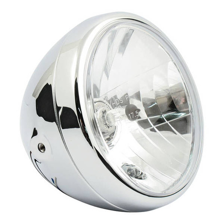 Pasuje do: Uniwersalna. Chromowana. Homologacja na Europę. Żarówka H-4. Ze światłem postojowym. Reflektor pryzmatyczny, przezroczysta soczewka. Montaż bokiem do motocykla. M8.