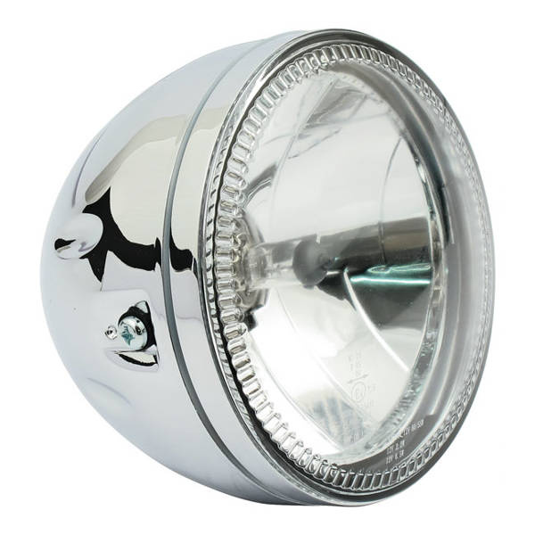 Pasuje do: Uniwersalna. Chromowana. Homologacja na Europę. Żarówka H-4 12V 60/55W. Ze światłem postojowym (LED pierścień). Przezroczysta gładka soczewka. Montaż boczny.