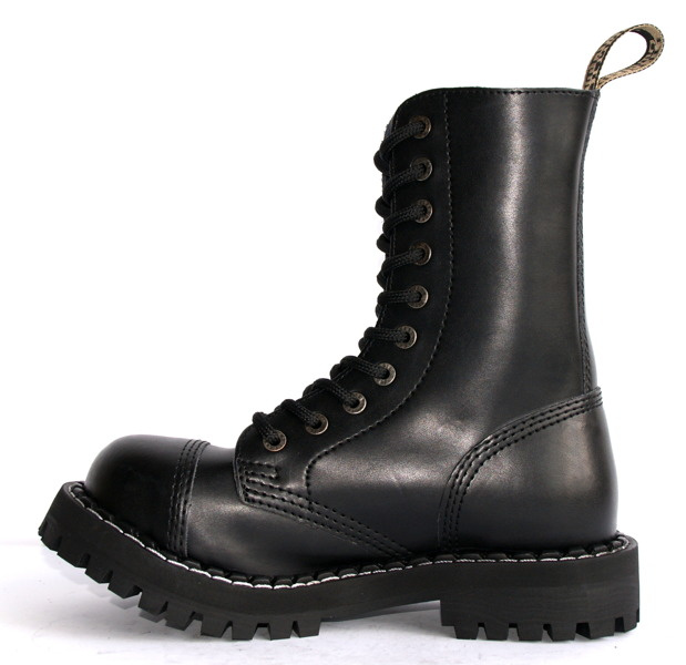 • Średnie, 10-dziurkowe CZARNE glany ze skóry naturalnej bydlęcej licowanej.Produkcja polska. Najwyższa jakość wykonania i materiałów. Potrójne szwy, śrubowana podeszwa LUG, stalowe wzmocnienia w czubkach butów. Gwarancja długiego i wygodnego używania.