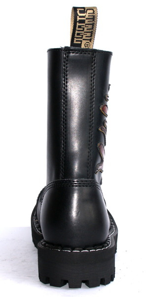 - po zewnętrznej stronie buta wszyte zostały płomienie podkreślające zadziorność glanów,