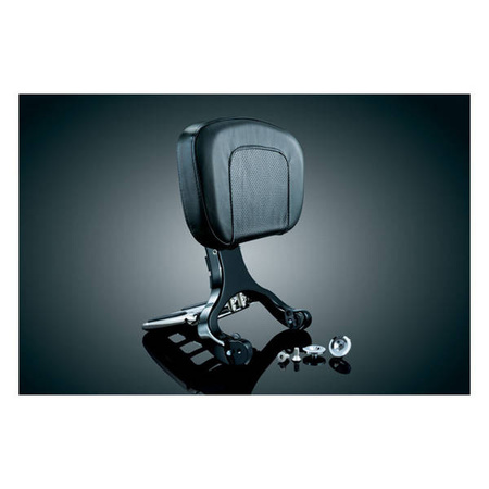 Black & Chrome. A rider & passenger backrest and luggage rack in one! Sturdy aluminum frame with steel folding luggage rack. Once installed enables you to 'fold' it back and forth from rider to passenger backrest without tools in seconds. Full adjustability with stainless sliding rods, push button locks & knurled threaded knobs. Note: Required model specific mounting brackets 542453 (03-17 Softail), 599625/599626 (18-up Softail), 559027 (06-17 Dyna), 542316 & 542318 (97-08 Touring), 542319 (09-13 Touring), 542880, 559024 and 559025 (97-up Touring) and 559028 (04-up XL) are sold separately. See online catalog for part numbers with additional fitment information. Note: See 542873 for matching Xkursion 24.8 liter trunk/rack bag.