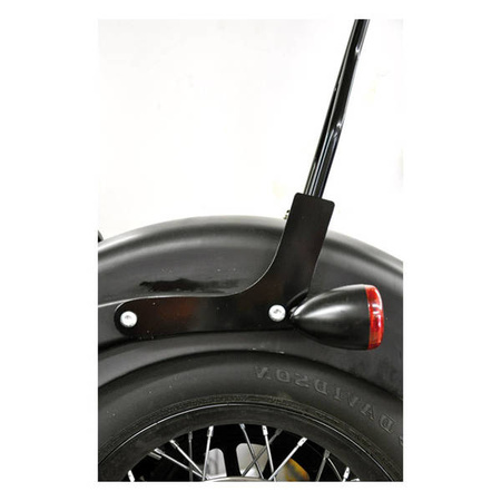 8.75" wide. Black powder coated. 10 gauge steel. Mounts to outside of fender struts. Takes all 8.75" wide Cycle Visions sissy bars. Note: Softail Slim requires no turn signal relocation. Note: Appropriate docking hardware must be purchased separately.