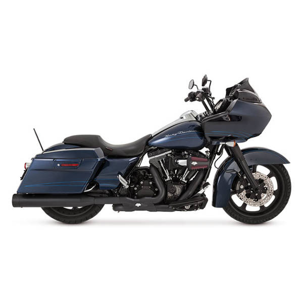 MATTE BLACK WITH STOCK OVERSIZED 450 BLACK ENDCAPS; 4.5-INCH DIAMETER MUFFLERS; 2.5" PERFORATED CORE BAFFLES