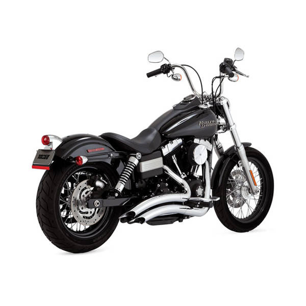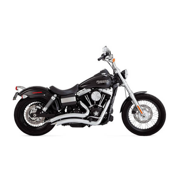 Chrome. Streamlined curves, that never seem to end, looks that demand a second glance. Like all Vance & Hines pipes the Big Radius comes with full coverage 2 1/2" diameter plasma cut heat shields that preserve the 'new' look and will virtually eliminate visible blueing. Power, torque and the signature Hot-Rod sound are all included. Baffles are removable. Note: Comes with 18mm O2 threads, includes 12mm conversion inserts and sensor-hole plug set so exhaust will fit all model years. Note: See 981797 for replacement baffle. Note: See 558779 for optional quiet baffle.