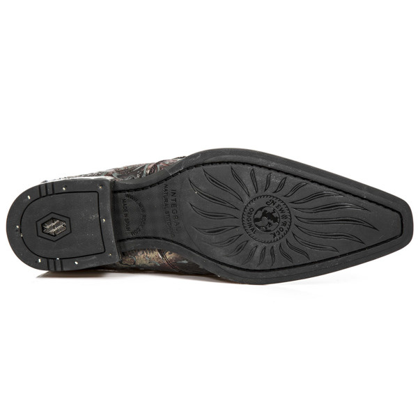 System dostarcza wyciąganą wkładkę, typu COMFORT PLUS, która jest wykonana tylko z wysokogatunkowych naturalnych skór, oraz jest antybakteryjna. Wkładka buta jest uzbrojona w liczne perforacje w celu wydajniejszej transpiracji wilgoci i utrzymania stopy w stanie niezmiennym. Podeszwa wykonana jest z naturalnej i antypoślizgowej gumy, oraz naturalnej wysokogatunkowej skóry. Wszystkie komponenty buta, włączając w to skórzaną wyściółkę cholewki, są jednocześnie integralnie razem klejone i przeszyte do samego wnętrza buta co podnosi wydatnie ich wartość użytkową i trwałość noszenia. Obcas: górna część wykonana jest z naturalnej antypoślizgowej gumy. Podwójnie mocowana cześć wewnętrzna i zewnętrzna obcasa ze śrubami mocującymi. Laserowo grawerowany branding NEW ROCK’a.