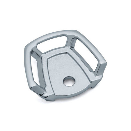 Chrome. Stainless steel construction and an excellent attachment point for luggage straps. Uses the rear seat mount bolt as attachment point.