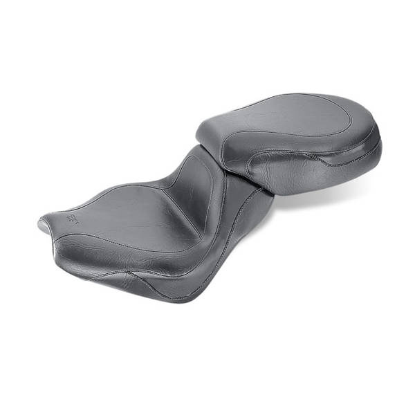 A 2-piece set with 16,5" wide front seat and 12,5" wide rear seat. Mustang's Sport Touring seats feature a sportier look than traditional touring seats, with a driver bucket that sits you at the ideal cruising angle at a similar reach to the controls compared to stock. The entire width of the comfortable rear seat is fully supported by Mustang's unique internal steel wings. Built on a marine-grade fiberflass baseplate, the two-piece Seat mounts just like stock.