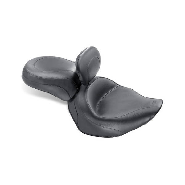 A solo seat, front width 17,5" wide, with fully adjustable, easily removable driver backrest and front bucket that sits the driver at an ideal cruising angle.