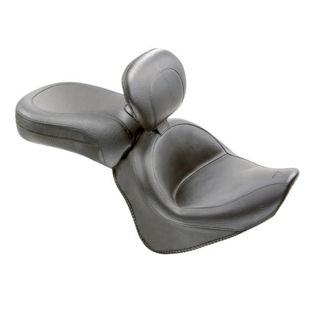 A plain touring seat with 16" wide passenger area, 12,5" wide passenger seat and fully adjustable, easy removable driver backrest. The Standard Touring platform features several design improvements over the stock seat. A deeply pocketed driver bucket sits you in the ideal cruising angle at a similar reach to the controls compared to stock.