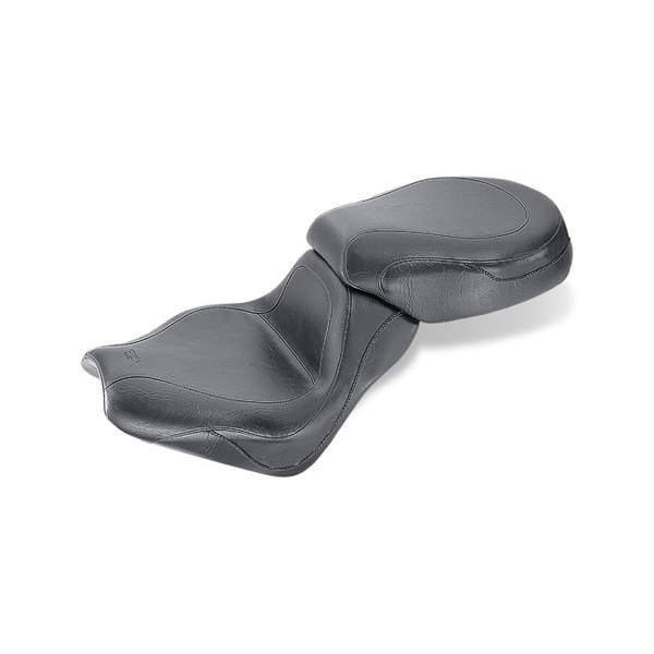 A 2-piece set with 16" wide front seat and 12,5" wide rear seat. Mustang's Sport Touring seats feature a sportier look than traditional touring seats, with a driver bucket that sits you at the ideal cruising angle at a similar reach to the controls compared to stock. The entire width of the comfortable rear seat is fully supported by Mustang's unique internal steel wings. Built on a marine-grade fiberflass baseplate, the two-piece Seat mounts just like stock.