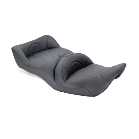 A touring seat with 18" driver seat and 18,5" passenger seat. The Standard Touring platform features several design improvements over the stock seat. A deeply pocketed driver bucket sits you in the ideal cruising angle at a similar reach to the controls compared to stock.